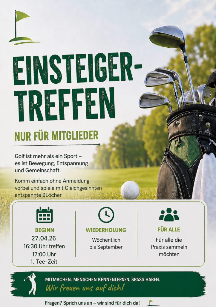 Liebe Golfdamen, der Frühling ist da, und mit ihm möchten wir so langsam mit Euch in die Golfsaison starten. Beginnen werden wir mit einem gemeinsamen Kaffeetrinken im Berkenbergs am 12.04.22 um 14.00 Uhr. Während dieses Treffens werden wir Euch auch den...